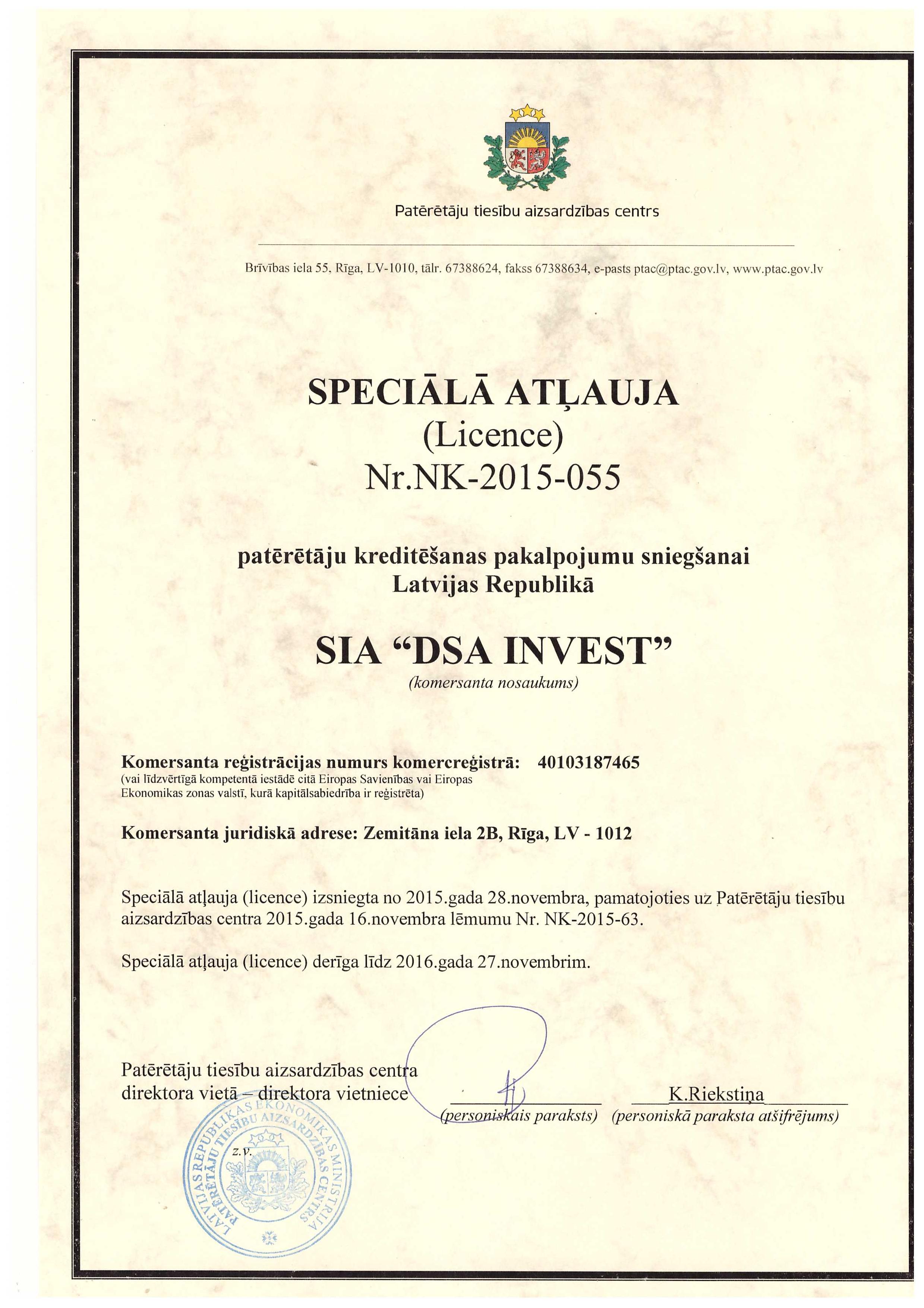 Компания DSA INVEST уже несколько лет предлагает кредиты под залог Вашего транспортного средства, а так же потребительские кредиты до 3000 EUR. На протяжении всего времени оказания услуг небанковского кредитования DSA INVEST SIA использует только индивидуальный подход при работе с каждым клиентом.